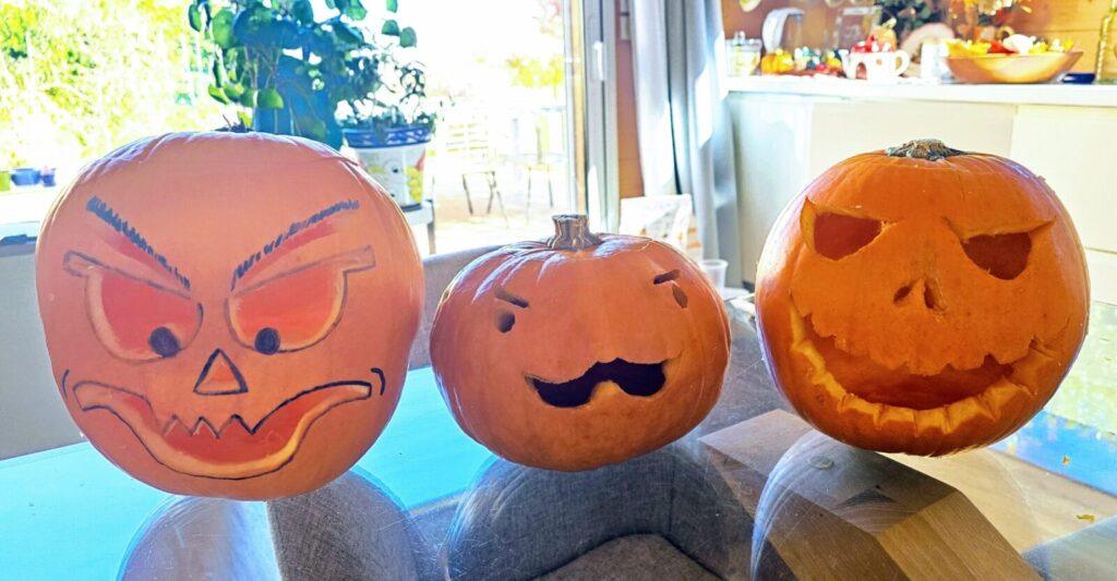 As every year, my children and I carved jack-o’-lanterns that we bought from a local fruit and vegetable shop, then placed them in front of the house. Trick-or-treating was a great success, and the evening ended at the village hall, which organizes a party for children and families each year.