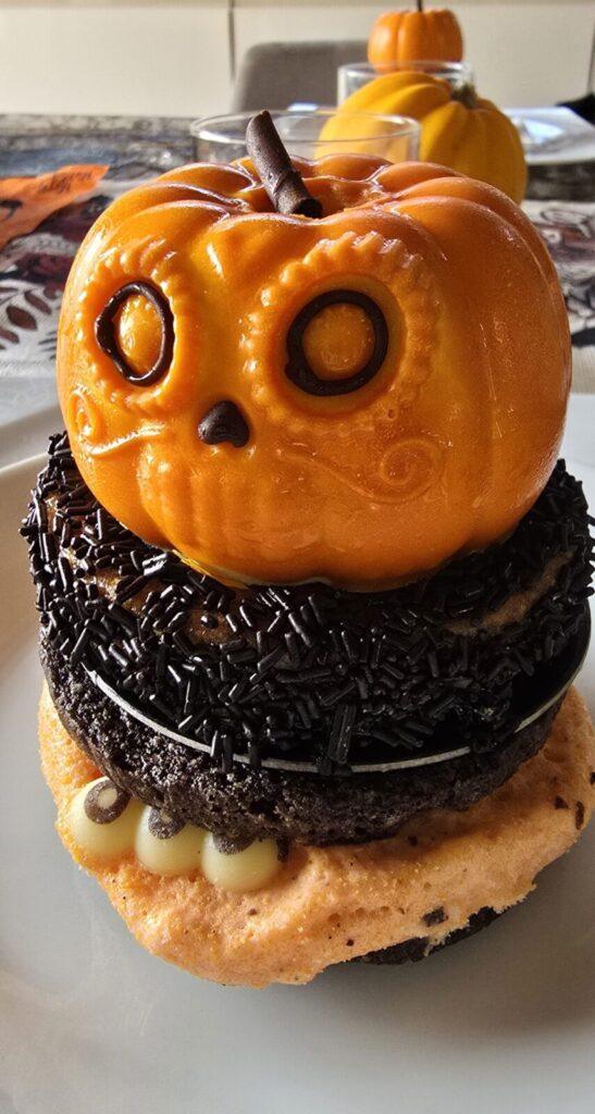 Our Halloween dinner was delightfully spooky, with ghost- and spider-shaped baos, pumpkin bread, and stunning desserts made by our local baker.