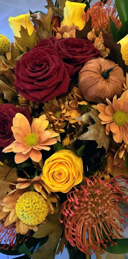 Another autumn ceramic I made in grogged clay is currently holding a beautiful bouquet my husband gave me. The photos highlight the flowers more than the vase itself — but don’t worry, I’ll show it again soon!