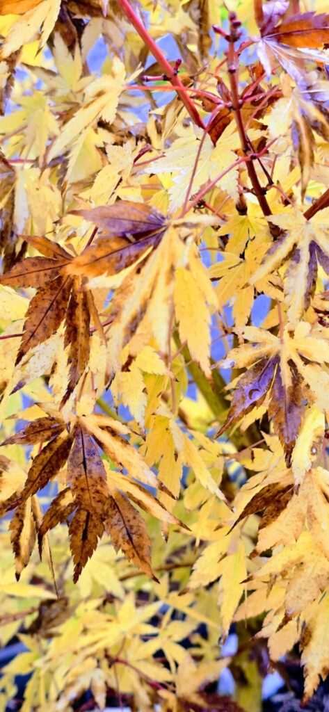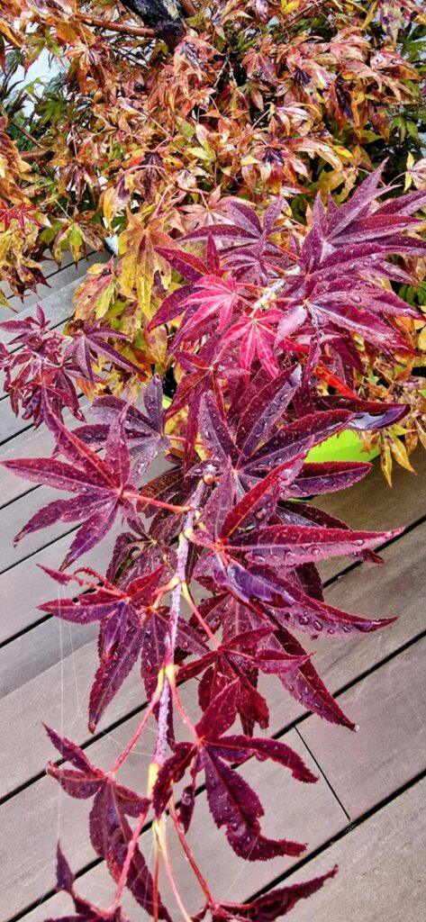Here in the South of France, autumn has been slow to arrive. Very little rain, plenty of sunshine, and lingering warmth are keeping the trees from turning their usual vibrant fall colors. Only the Japanese maples in pots are offering me their first shimmering hues. The cherry tree has even blossomed again — quite unbelievable!