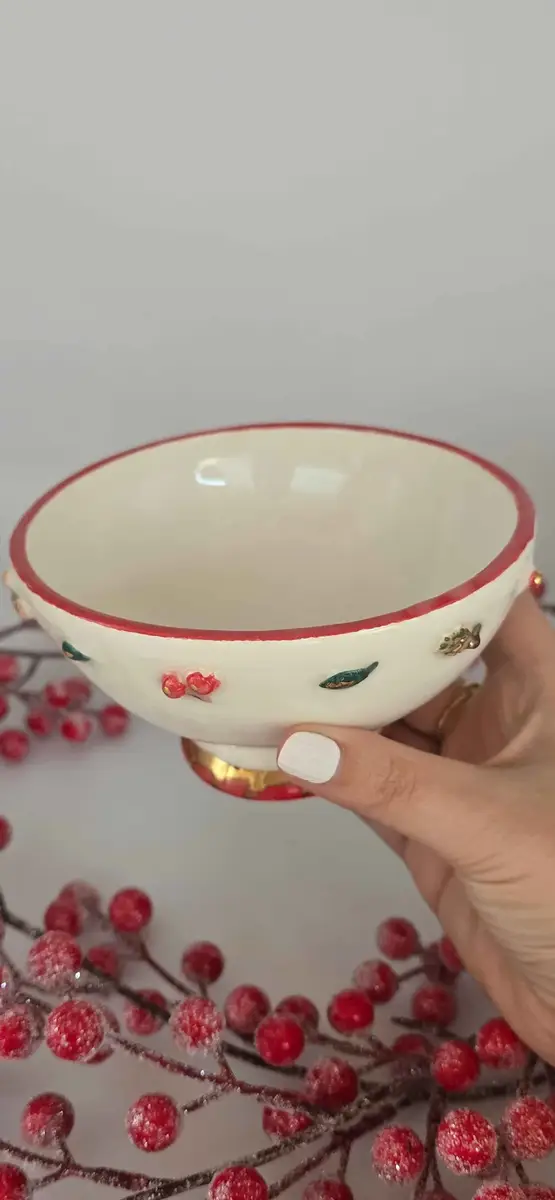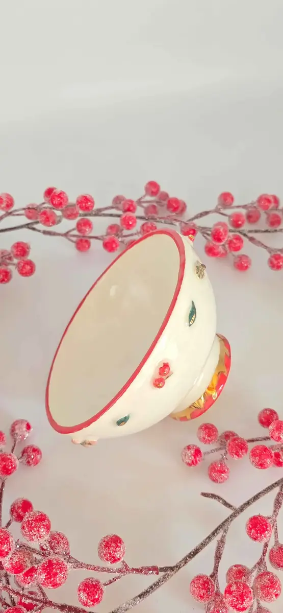 Chaque bol « Célébration hivernale » est une pièce unique. De légères variations dans le décor, la disposition des feuillages ou l’intensité des couleurs peuvent apparaître.