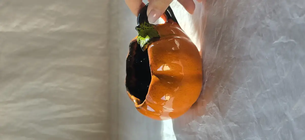 Modelé à la main en faïence noire, il présente une silhouette rebondie et gourmande, rappelant les petites courges des potagers d’octobre.