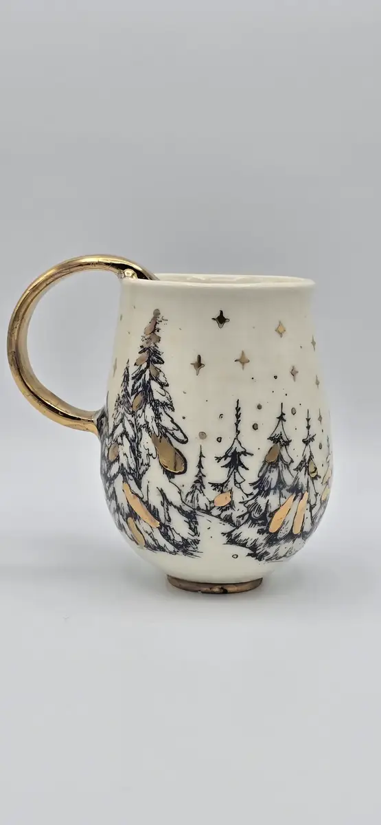 Chaque mug est réalisé à la main. De légères variations de paysages, de couleurs, de traits, de lustre ou de détails peuvent exister d’une pièce à l’autre, faisant de chaque mug une pièce unique, signature du fait main.