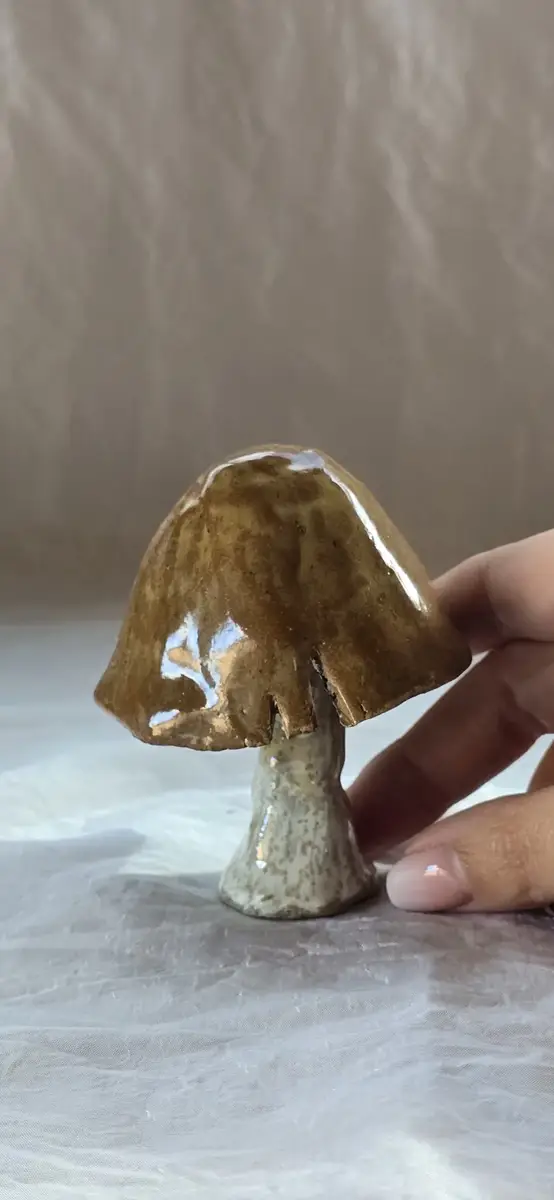 Ce petit champignon en céramique a été entièrement façonné à la main dans mon atelier sous le cerisier. Réalisé en grès de Saint Amand, il est décoré avec plusieurs émaux dans des tons marron doux et blanc crème, pour un rendu chaleureux et naturel. C’est une décoration parfaite pour l’automne.